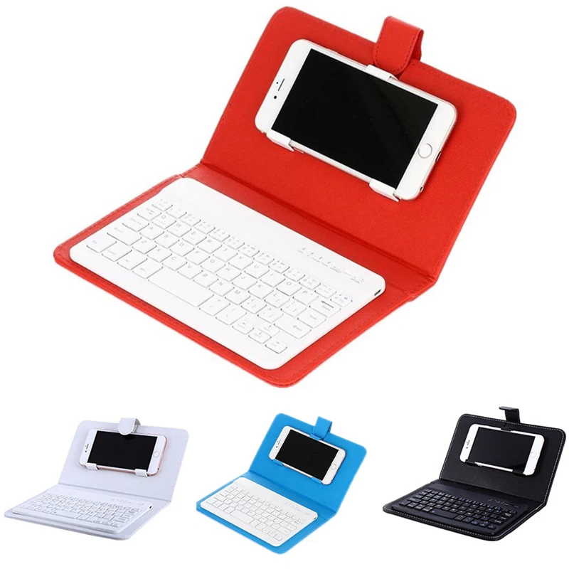 Wireless Bluetooth Mobile Phone Keyboard With Pu Leather Case Mini Wireless Portable Aluminium Lapt