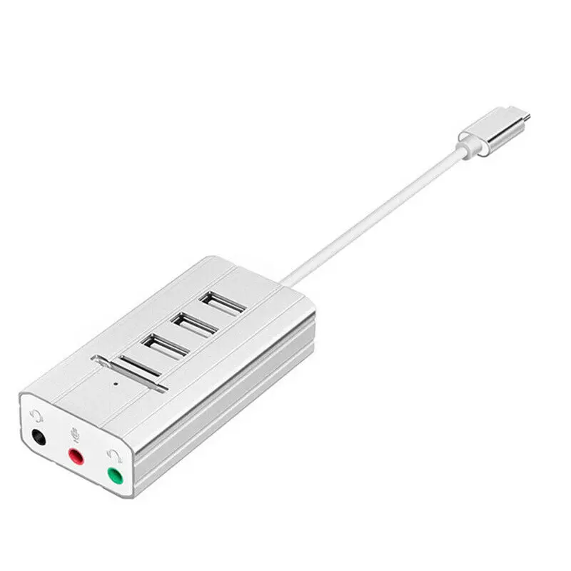 Type-C USB Hub External Sound Card AUX Mic Headset TF SD Adapter for Laptop PC